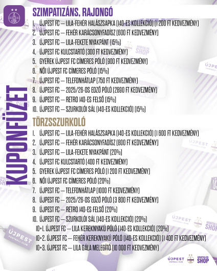 - Újpest FC – telefonhátlap (750 Ft kedvezmény)