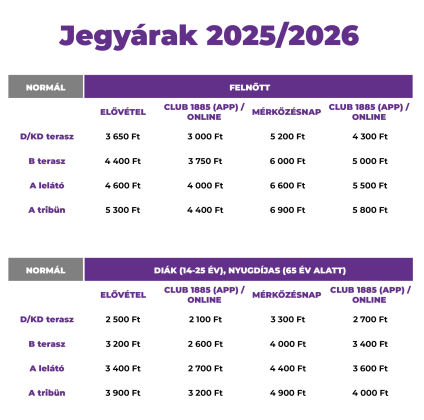 A jegyértékesítés nem névre szóló, így a jegyvásárlás során nem szükséges a személyes adatok megadása (név, születési hely és idő). Továbbá a jegyvásárláshoz nem feltétel a szurkolói kártya megléte. A mérkőzésre a 2025/26-ös szezonbérletek és a 2025-ös őszi bérletek érvényesek.
